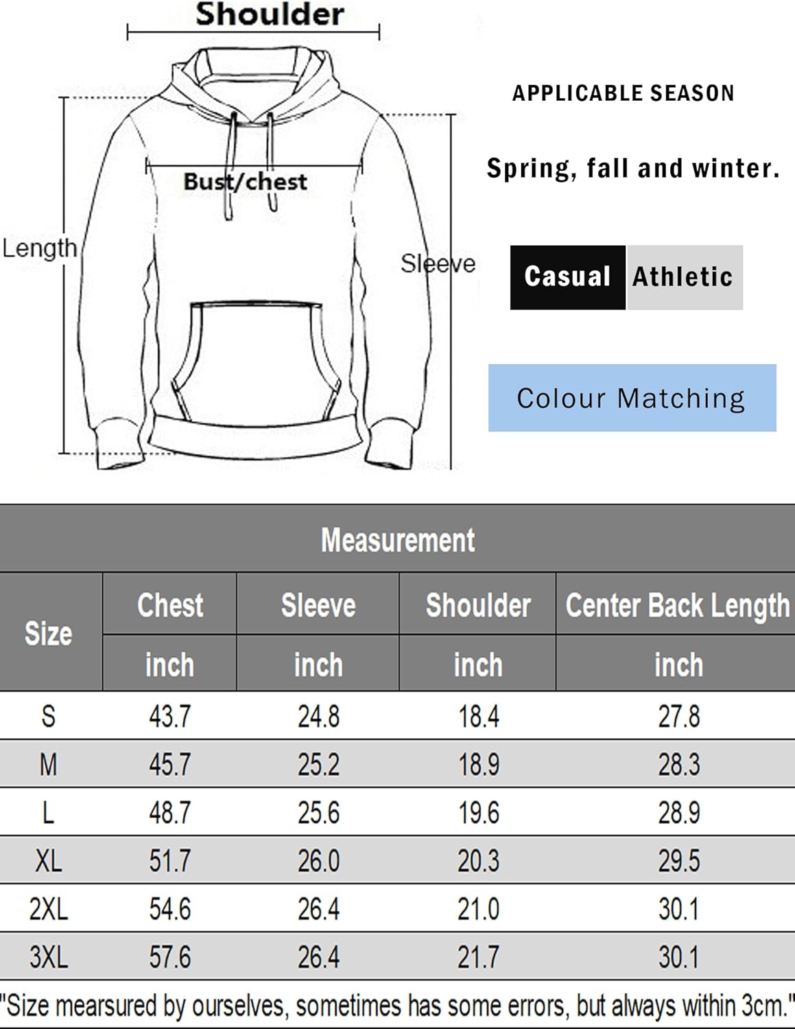 Size Chart of Mens Fashion Waffle Knit Sweatshirt with Pocket mens hoodiemens hoodie