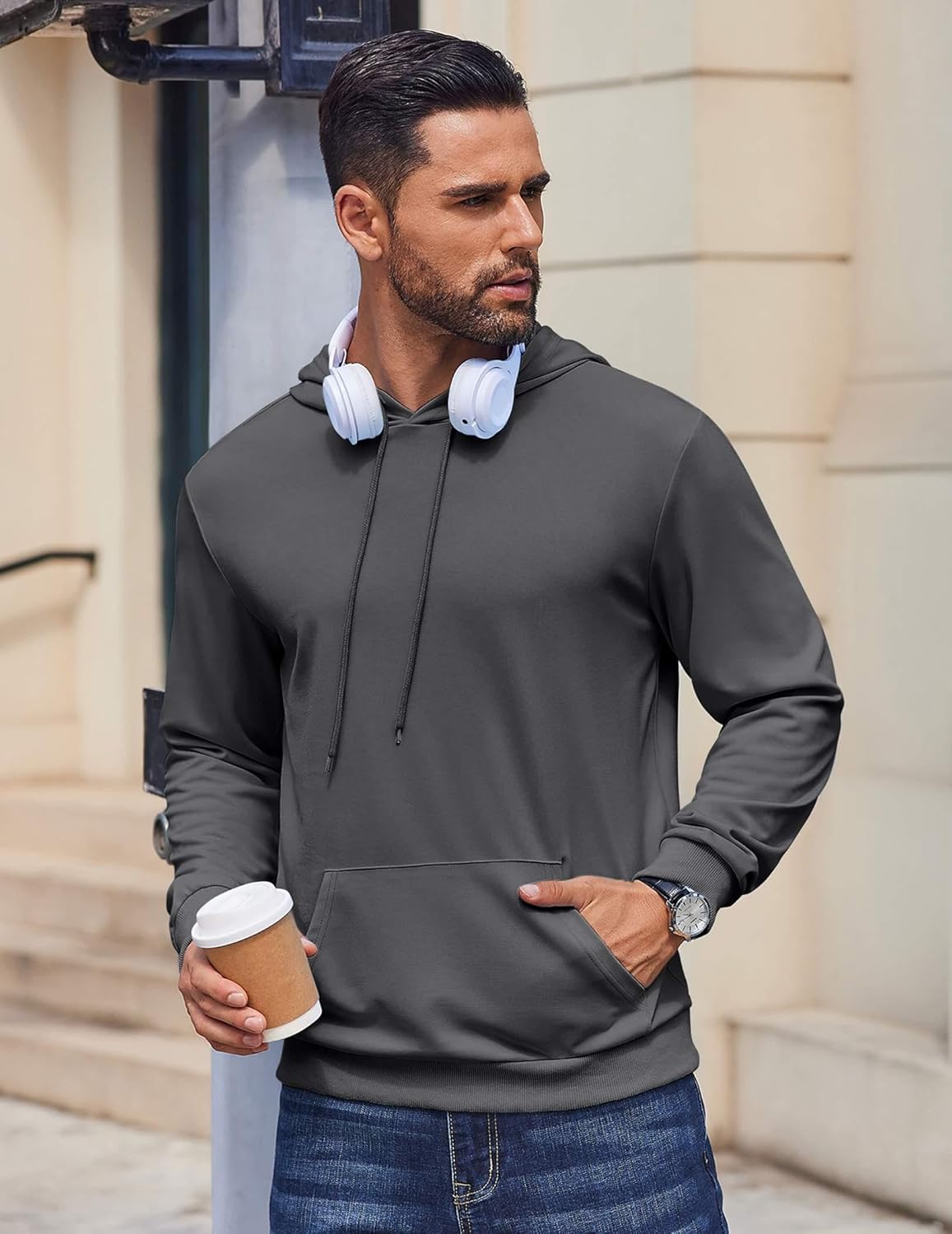 COOFANDY Mens Hoodie Pullover Long Sleeve Casual Fashion Sweatshirts Drawstring Gym Hooded Shirt with Kanga Pocket