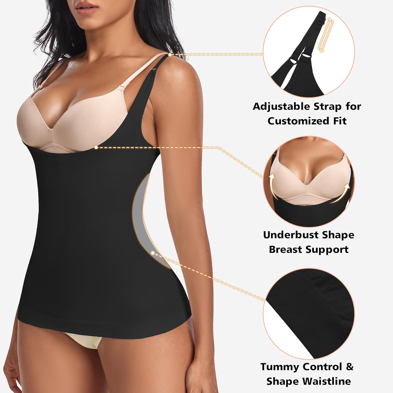 EUYZOU Women’s Underbust Shapewear Tank Tops – Seamless Tummy Control Compression Camisole Tops Slimming Tank